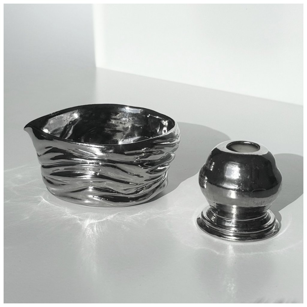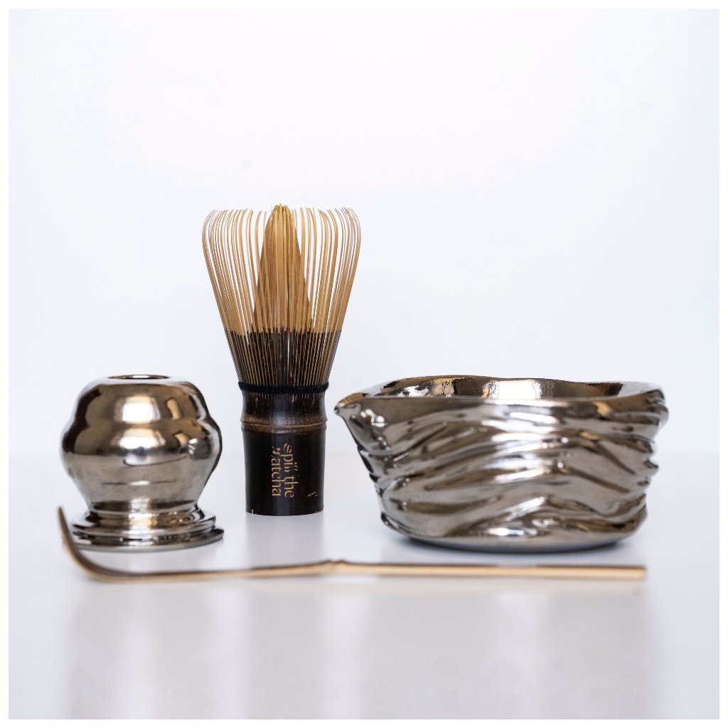Stojánky a mističky jsou ručně vyráběné originály, proto se jejich podoba i vzor mohou lišit. Postříbření je zdravotně nezávadné a nemá žádný vliv na chuť ani kvalitu matchy; obava ze ztráty antioxidantů při kontaktu s kovem je pouze mýtus spojený s nekvalitními materiály, u nerezové oceli apod. žádné riziko nehrozí.