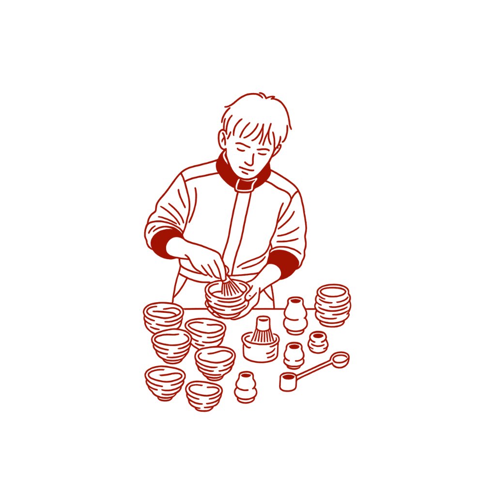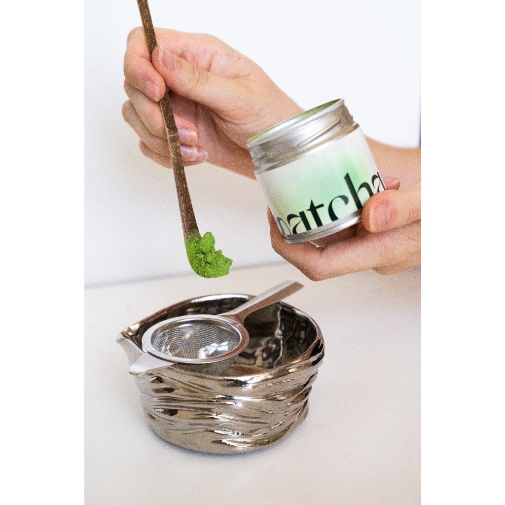 Stojánky a mističky jsou ručně vyráběné originály, proto se jejich podoba i vzor mohou lišit. Postříbření je zdravotně nezávadné a nemá žádný vliv na chuť ani kvalitu matchy; obava ze ztráty antioxidantů při kontaktu s kovem je pouze mýtus spojený s nekvalitními materiály, u nerezové oceli apod. žádné riziko nehrozí.