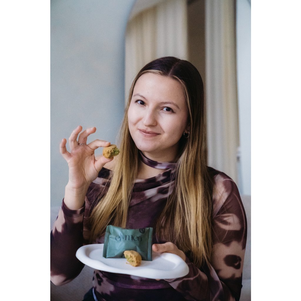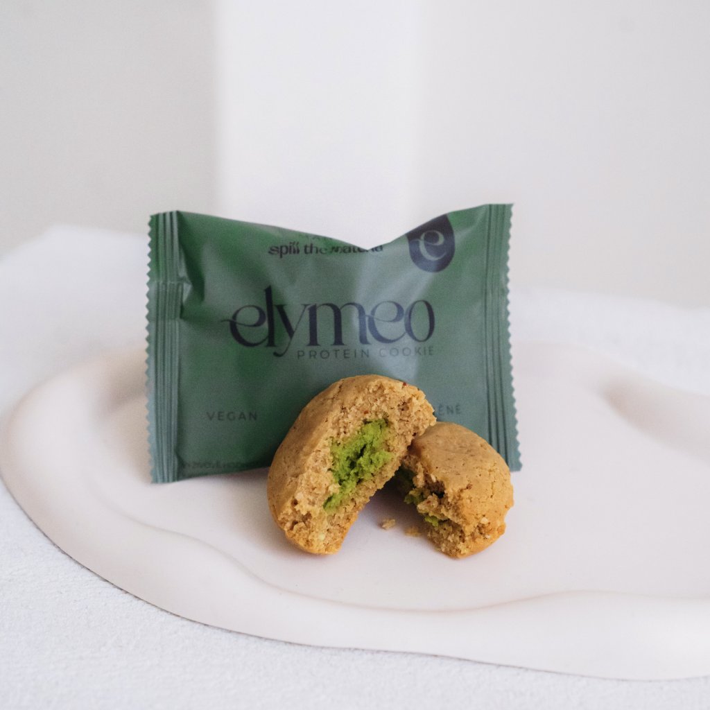 SLOŽENÍ: kešu ořechy, prebiotická kukuřičná vláknina, hrachový protein, kokos, jádra mandlí, lyofilizované mango 7%, zvlhčující látka: glycerol, voda, matcha 0,9%, himalájská sůl, kypřící látka: vinný kámen, sladidlo: steviol-glykosidy.